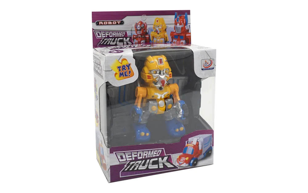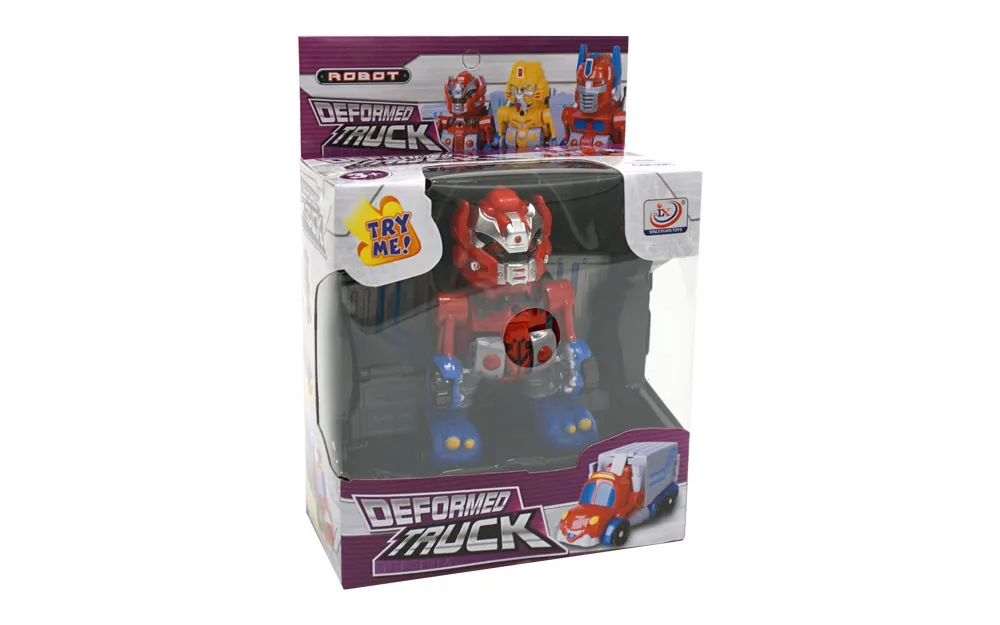 Robot koji se pretvara u kamion, ima zvuk i trepćuće svjetla. Možete birati između 3 različita stila. Robot je visok otprilike 11 cm. Za rad su mu potrebne 3 baterije tipa LR41 1.5V - priložene za demonstracijske svrhe.