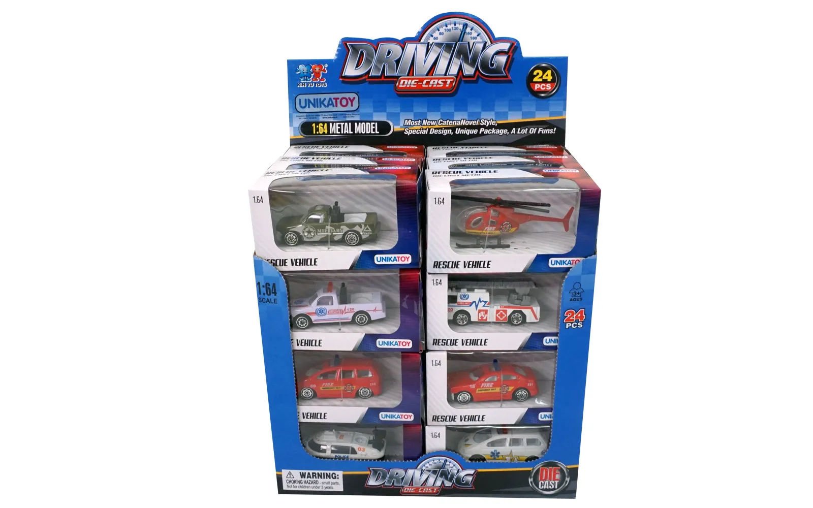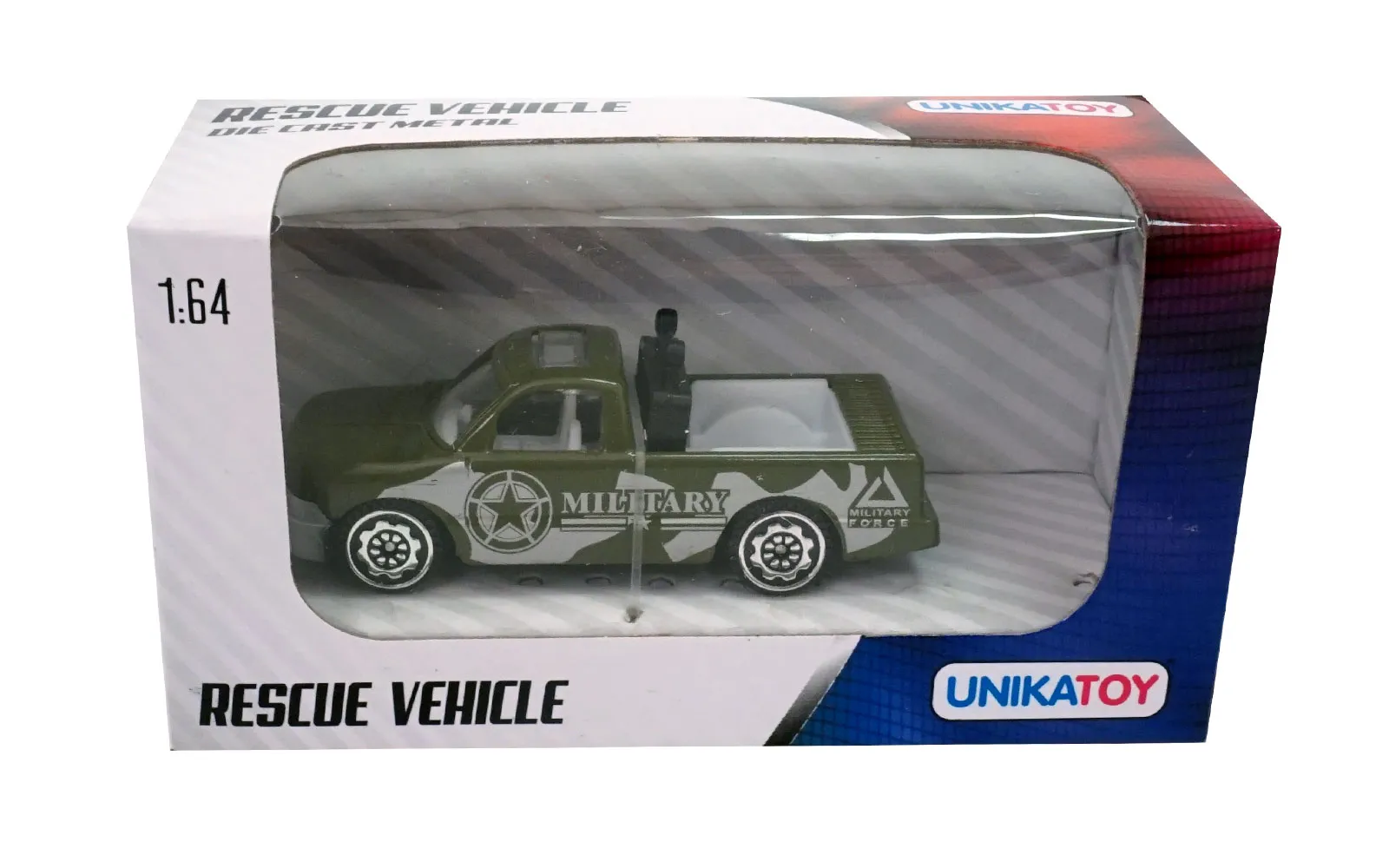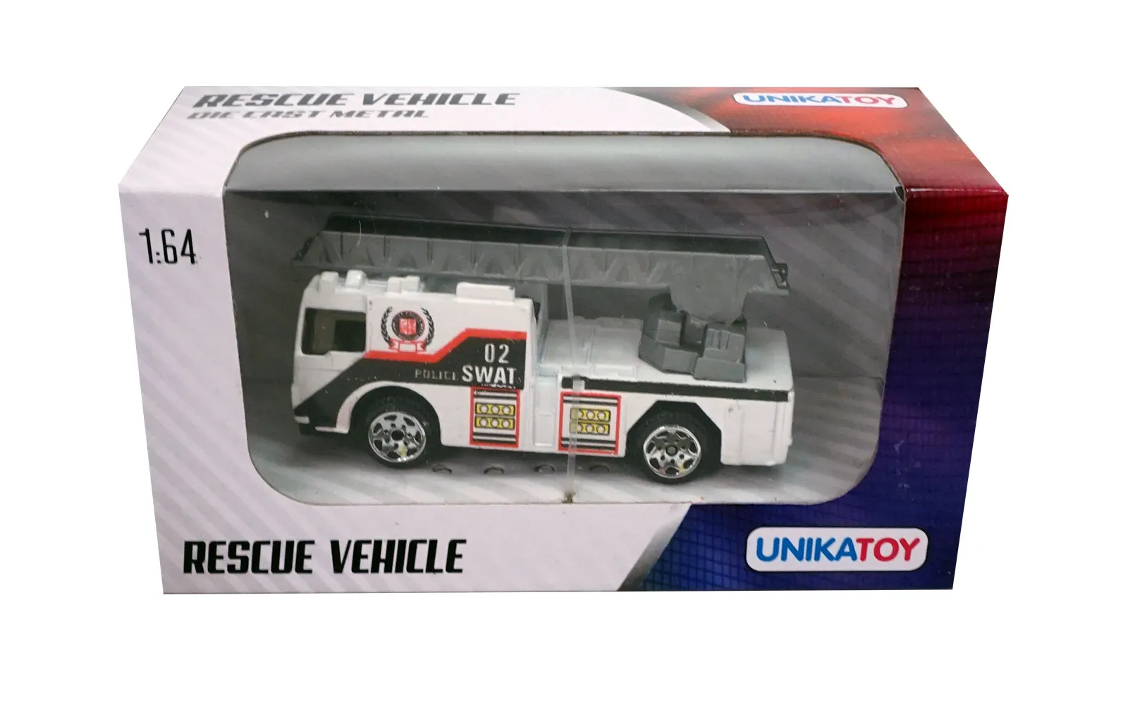 Različiti metalni modeli vozila s pojedinačnim plastičnim dijelovima 4 različite linije (vatrogasci, policija, vojska, spašavanje) u omjeru 1:64. Mala vozila za veliku zabavu.