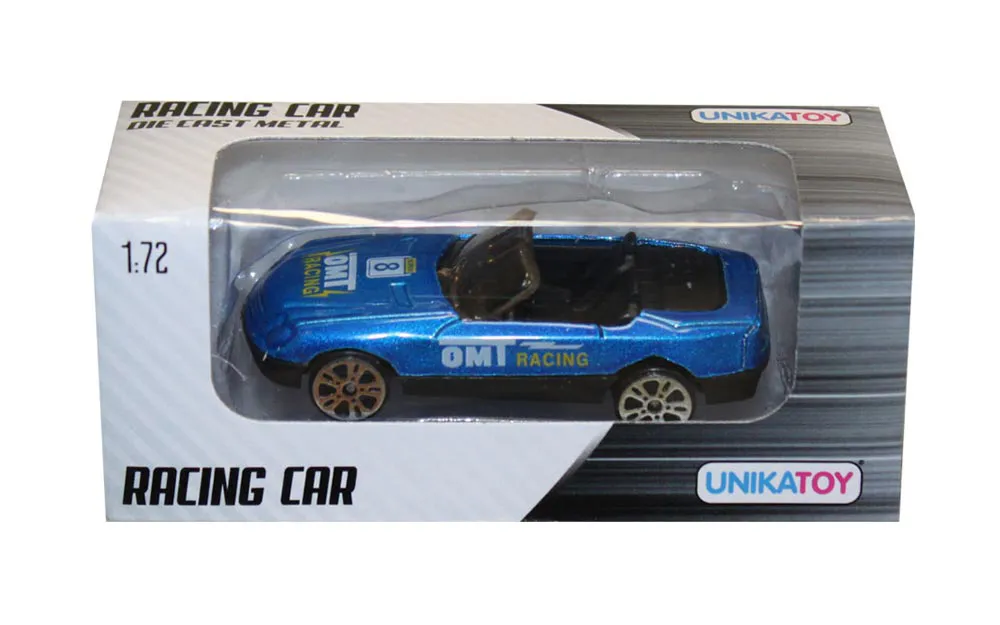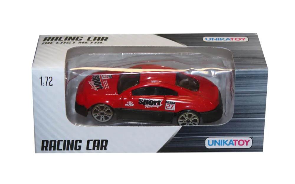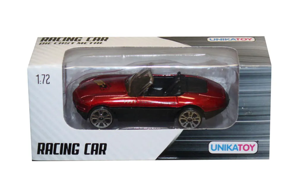 12 različitih stilova sportskih vozila su metalni modeli vozila s pojedinačnim plastičnim dijelovima u omjeru 1:72. Vozila imaju slobodan hod kotača. Igranje s malim autićima je uvijek zabavno.