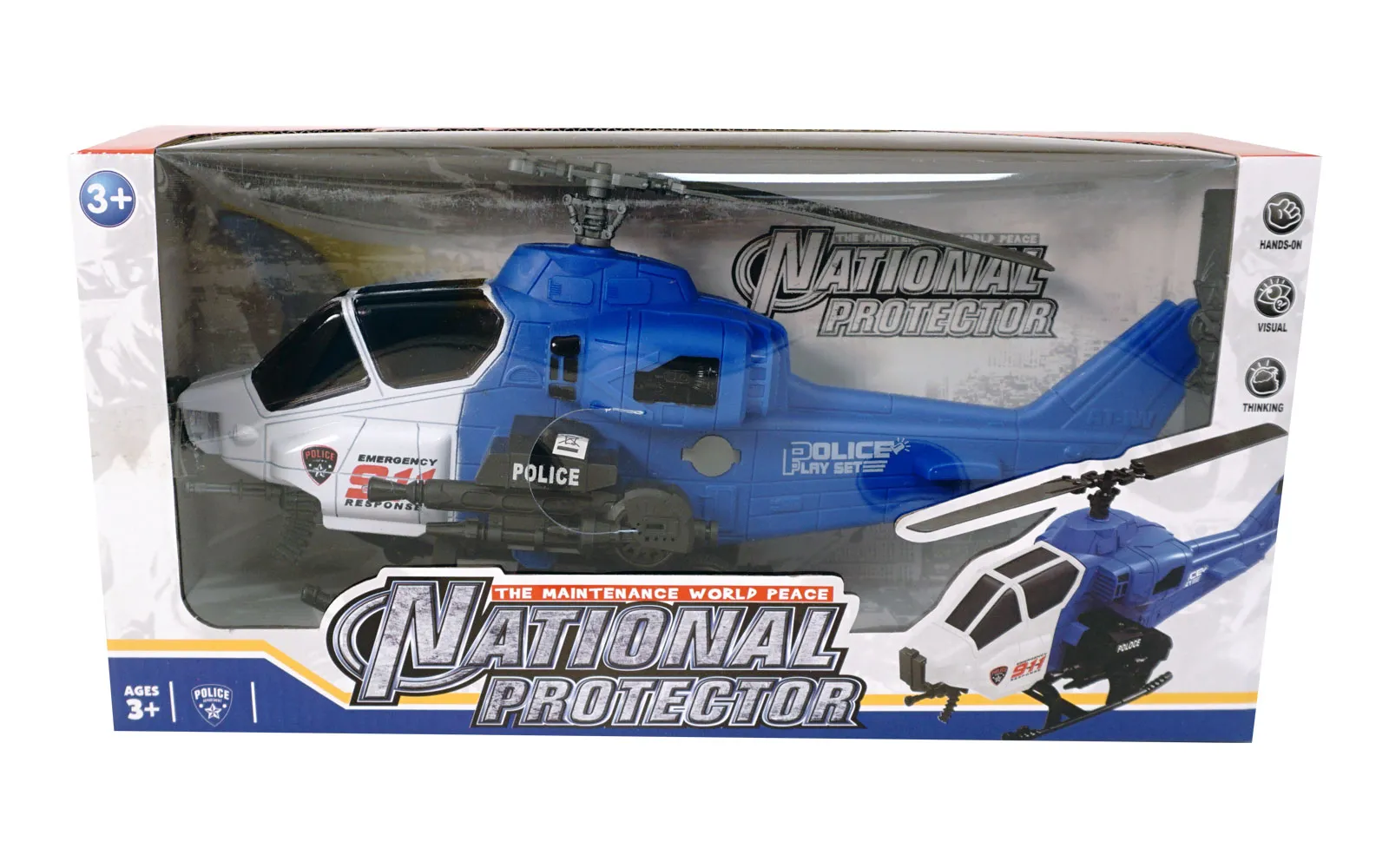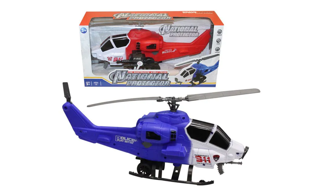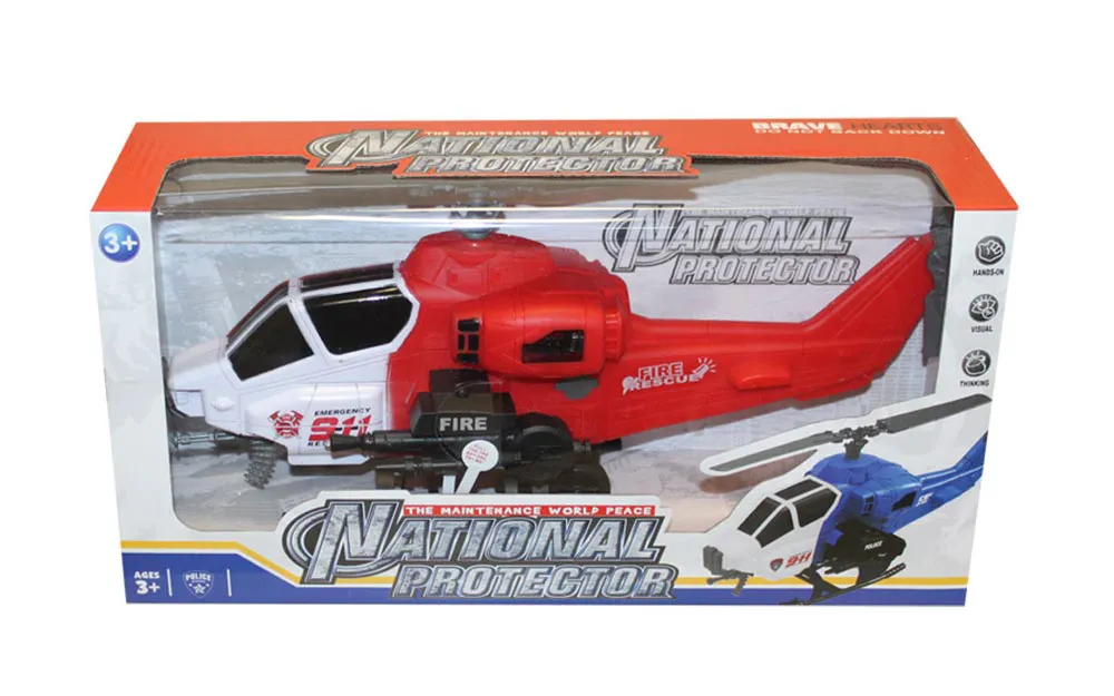 Baterijski helikopter veličine 36 cm ima pogon na trenje, zvuk i svjetla. Možeš birati između helikoptera u crvenoj ili plavoj boji.