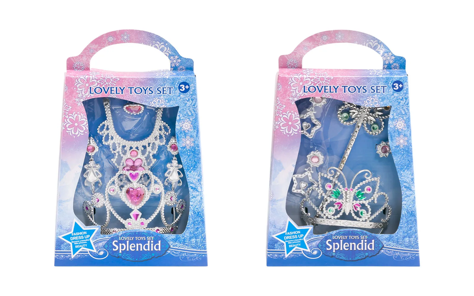 Set dva različita stila uključuje tiaru, naušnice, prsten i ogrlicu ili štap. Pravi izbor za princezu.