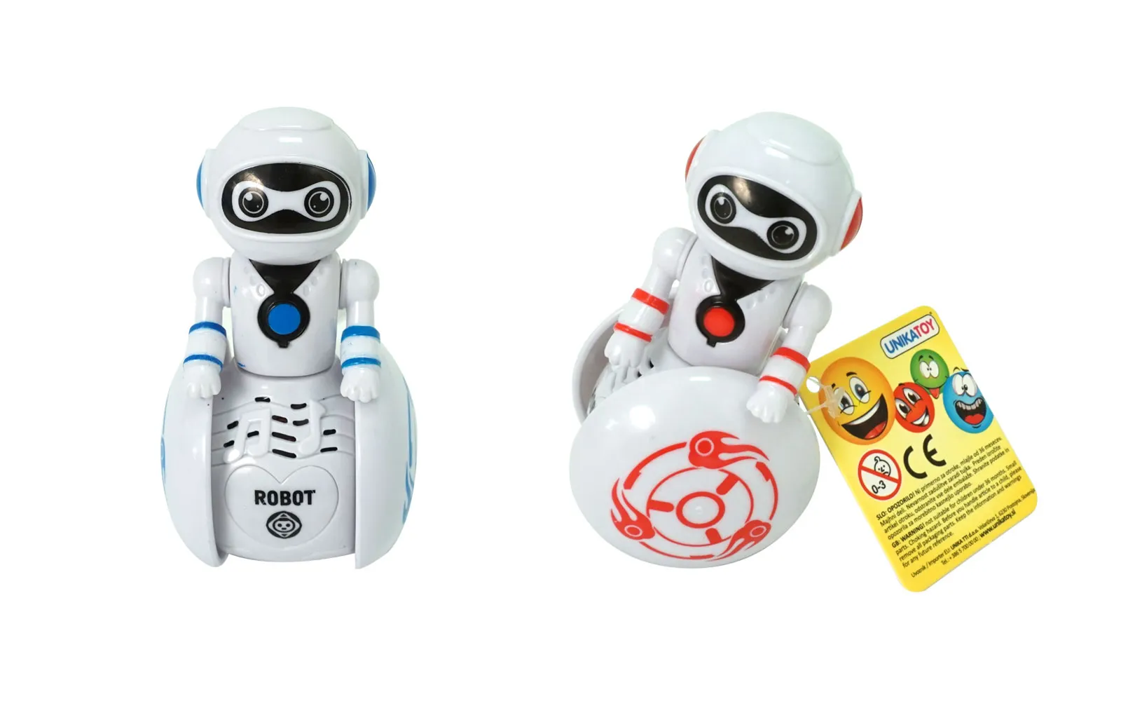 Baterijski robot Tumbler dvije različite boje kombinacije visok je 11 cm. Robot ima priložene baterije tipa LR44 1.5V. Robot ima različite zvukove i trepćuće svjetla koje se aktiviraju pljeskanjem. Robot se kreće na kotačima, prevrće se naprijed i natrag, ali se nikada ne prevrne. Robot se uvijek vrati u prvotni uspravni položaj.