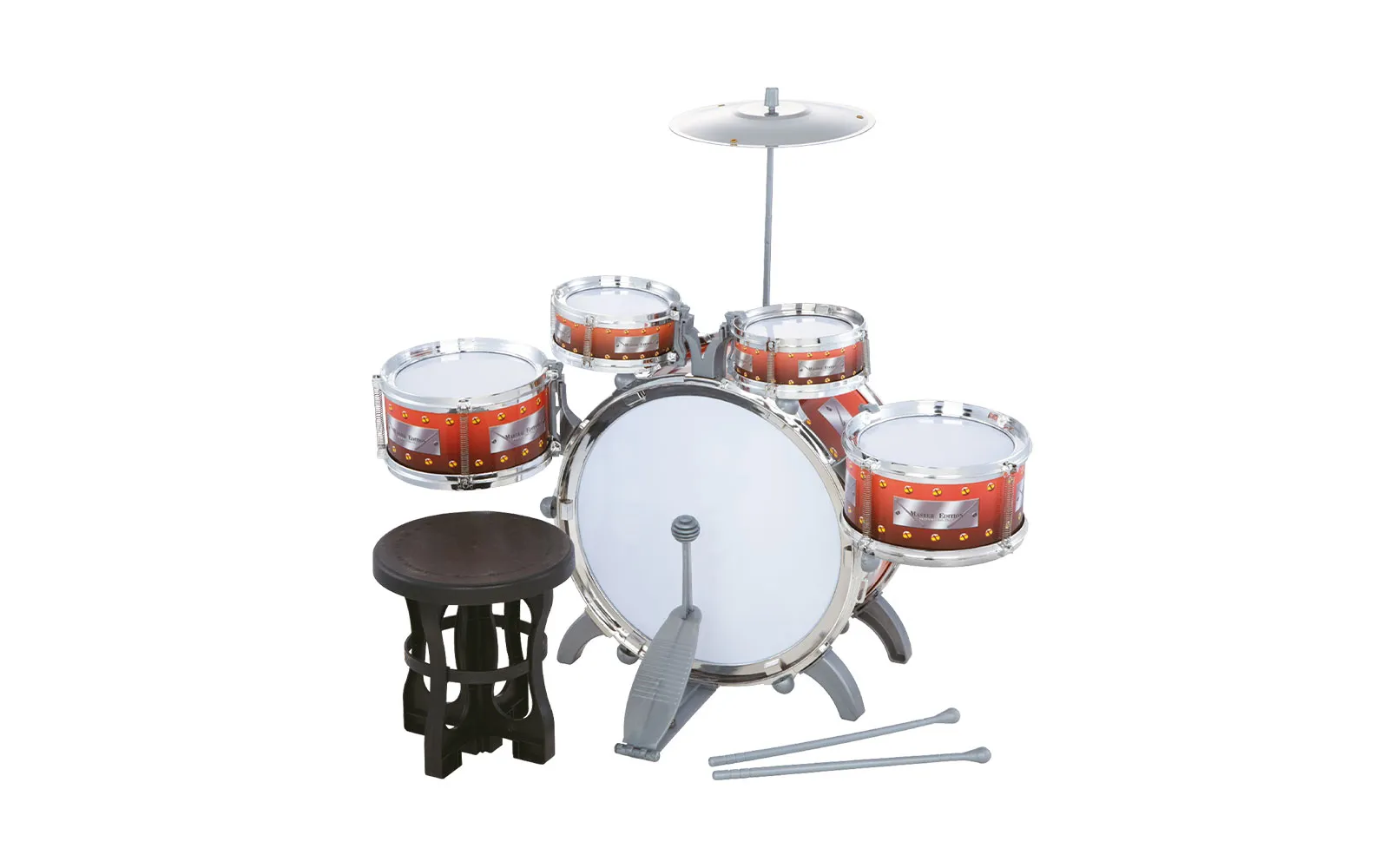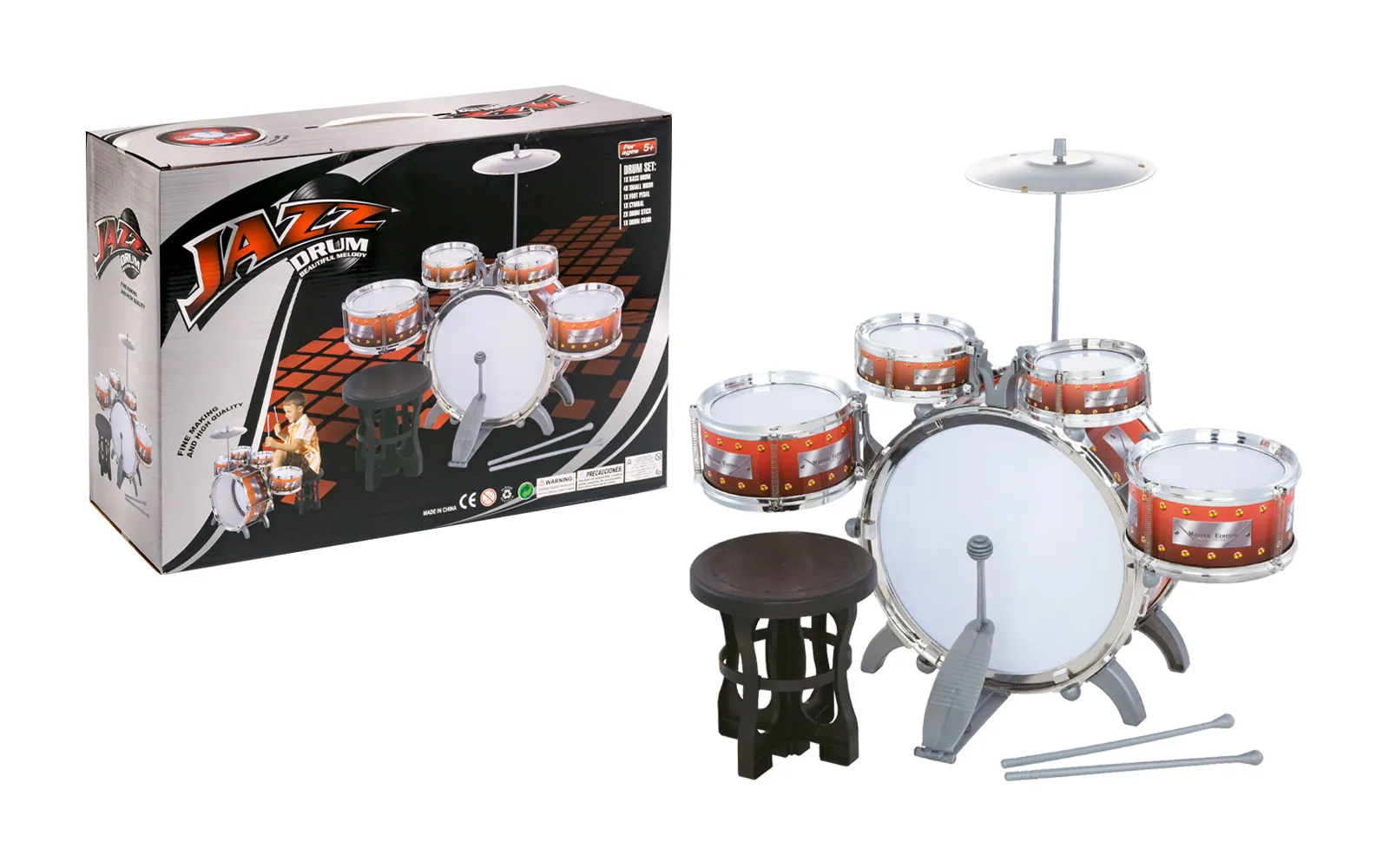 POSTANITE PRAVI GLAZBENIK I ZASVIRAJTE RITMIČNE MELODIJE! Neka vaše dijete otkrije čarobni svijet glazbe s ovim predivnim setom bubnjeva! Set je savršen izbor za male glazbene entuzijaste koji žele razvijati svoj ritam i kreativnost. SAVRŠEN SET ZA SVIRKU. Set bubnjeva uključuje sve što vašem malom bubnjaru treba: veliki bas bubanj, dva srednja i dva mala bubnja, činele, pedal, dvije palice za bubnjeve i stolicu za ugodno sviranje. ERGONOMSKI DIZAJN I PRILAGOĐENE DIMENZIJE: veliki bas bubanj: promjer oko 29 cm, visina 16 cm, srednji bubnjevi: promjer oko 15,5 cm, visina 9 cm, mali bubnjevi: promjer oko 11,5 cm, visina 5,6 cm, činele: promjer 19 cm, stolica: visina 19 cm, promjer sjedala 18 cm (nije prikladno za djecu težu od 48 kg), ukupne dimenzije montiranog seta: duljina 60 cm, dubina 40 cm, visina 50 cm. RAZVIJA MOTORIČKE SPOSOBNOSTI I RITAM. Sviranje bubnjeva pomaže djeci razviti osjećaj za ritam, poboljšava koordinaciju i potiče glazbeno izražavanje. To je odličan način da djeca kroz igru steknu prva glazbena iskustva! Neka zabava i glazbena kreativnost počnu!