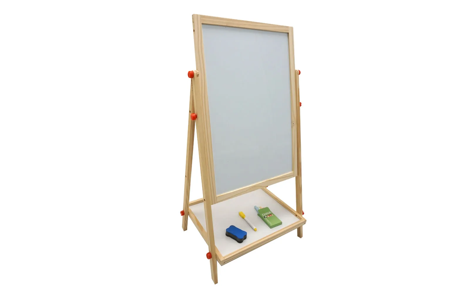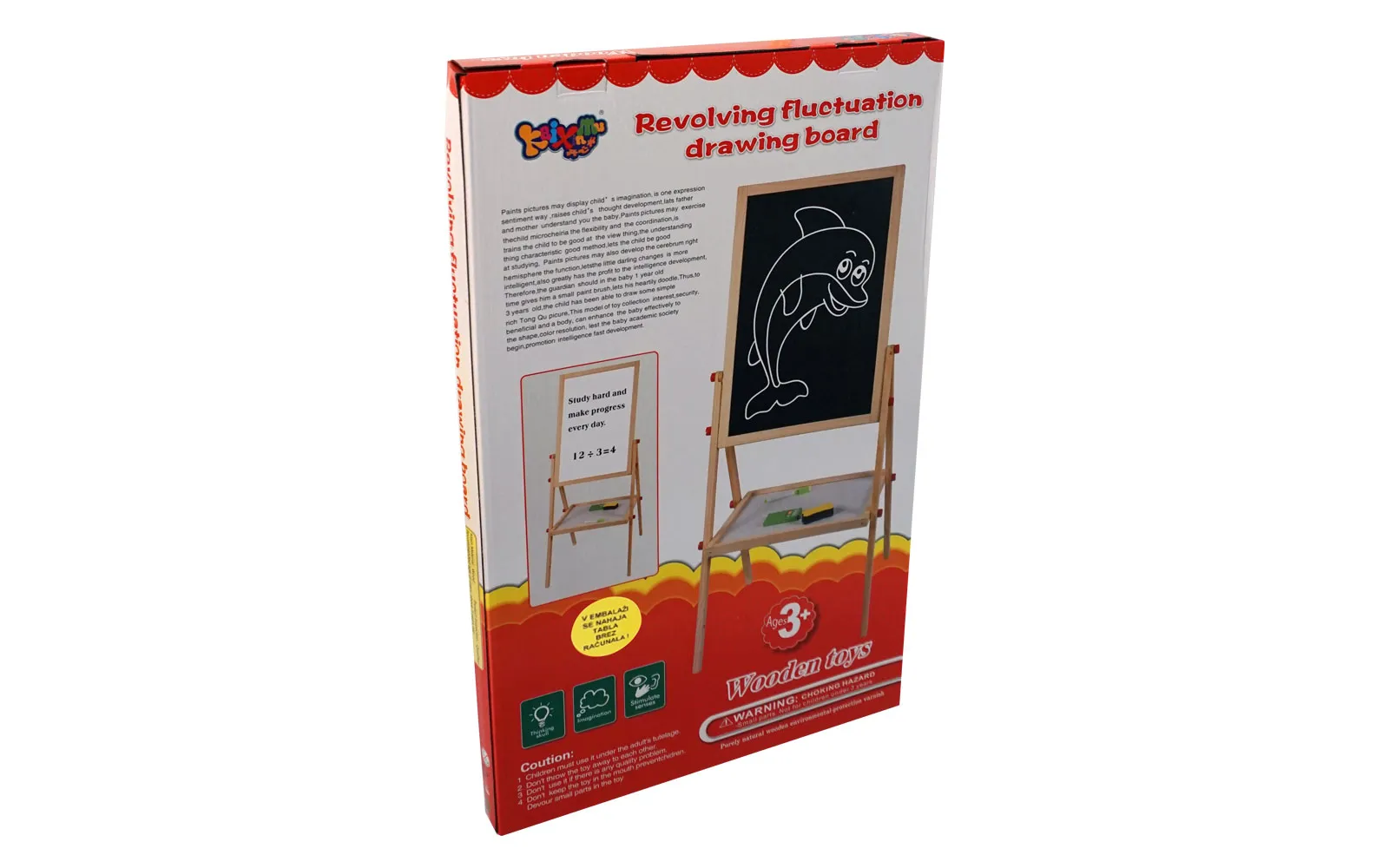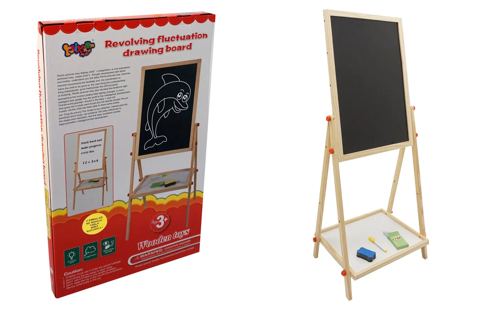 Magnetska drvena ploča s priborom je podesiva po visini. Dimenzije su 40x67/86 cm. Dimenzija površine za crtanje, pisanje je 53.5x36 cm. Ploča se može koristiti na dvije različite ravni.