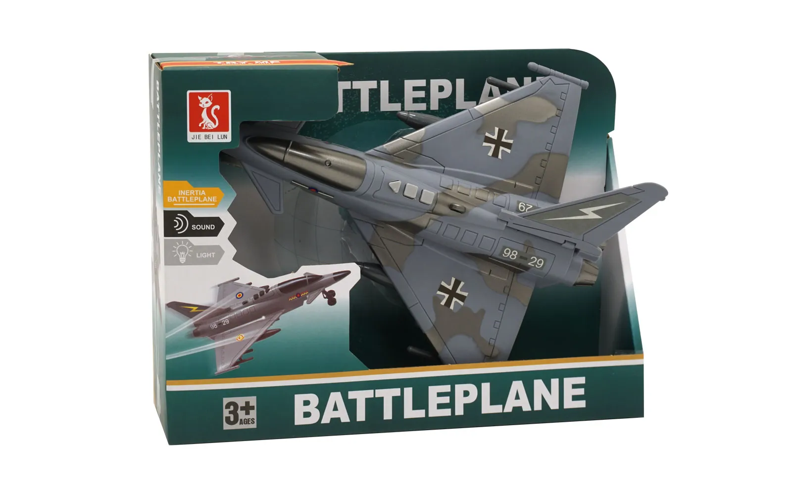 Vojni avion veličine 26 cm sa zvukom i svjetlima. Proizvod je pogodan za djecu od 3. godine starosti nadalje.