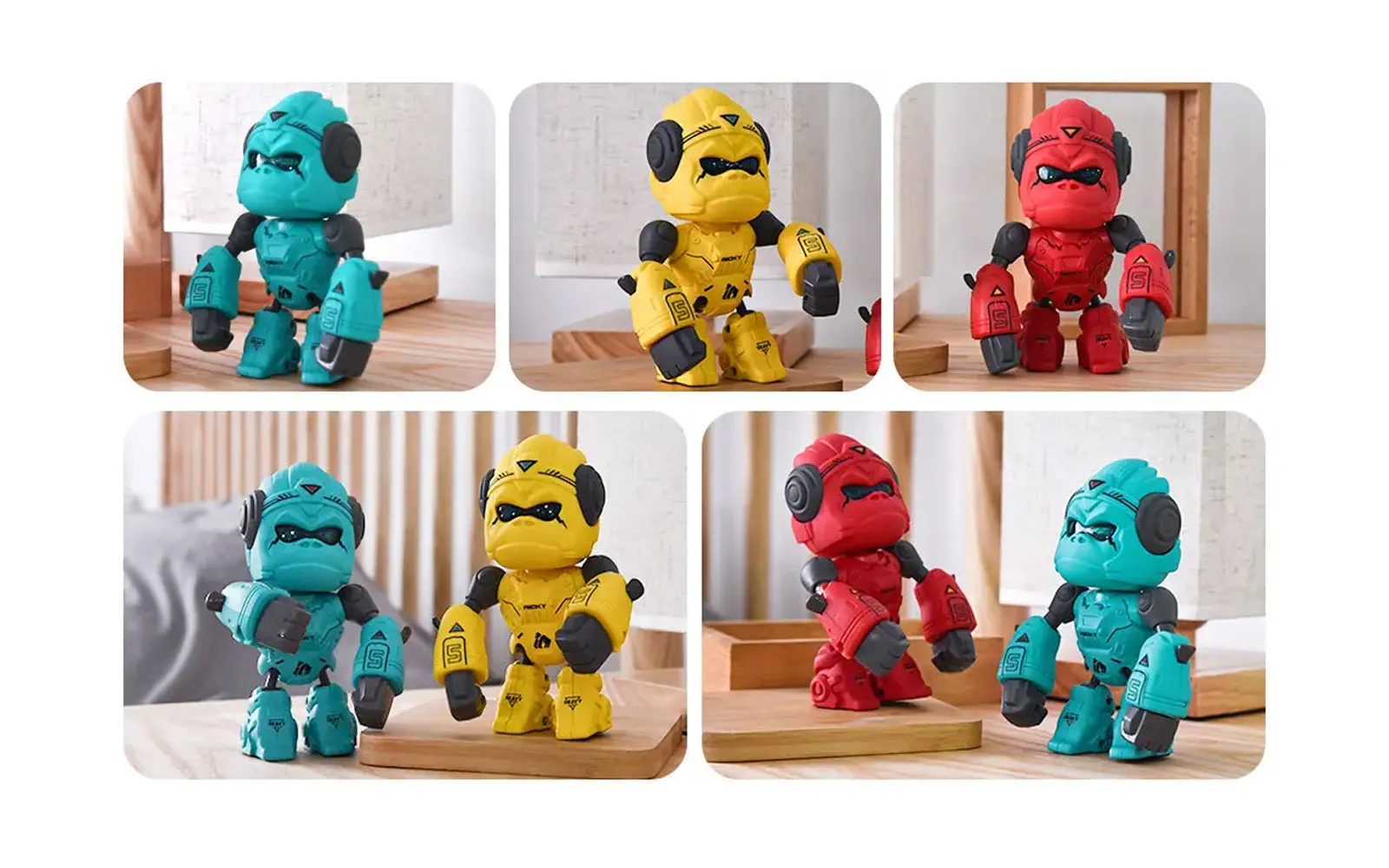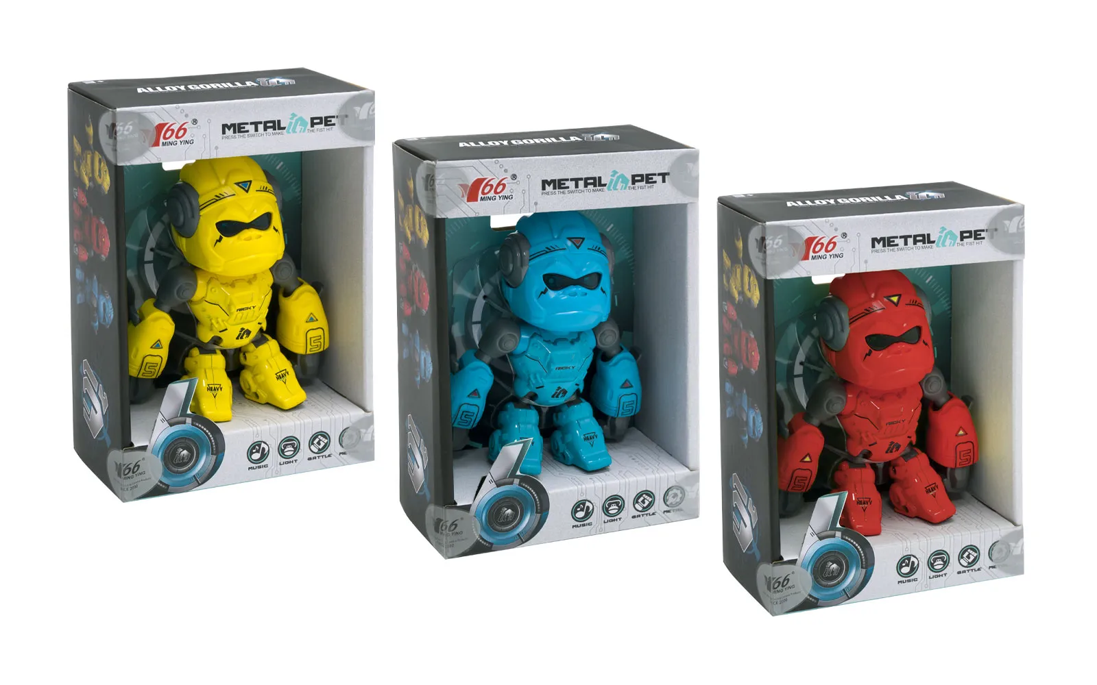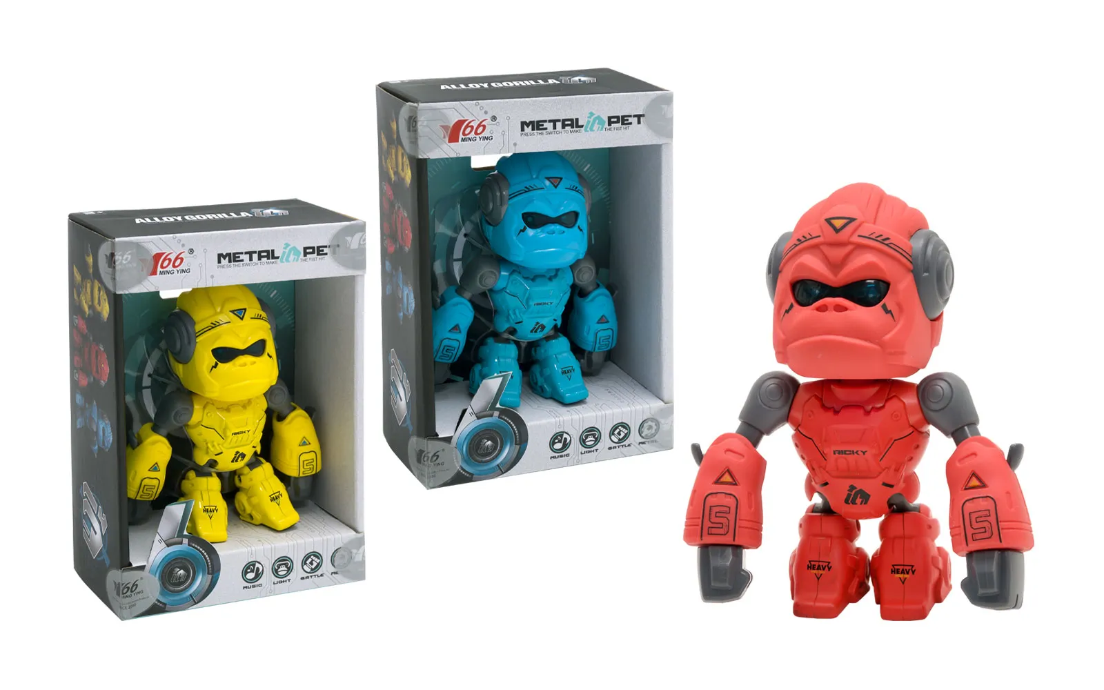 Robotizirana gorila, napravljena od die cast materijala, veličine je 13 cm i ima zvučne efekte. Gorila je čvrste izrade, oglašava se kao prava gorila, oči joj svijetle, a pritiskom na ruku pruža zapešće i spremna je za borbu. Dostupna je u žutoj, plavoj ili crvenoj boji. Proizvod radi na baterije tipa LR44 x 3, koje su priložene. Proizvod nije prikladan za djecu od 0 do 3. godine starosti.