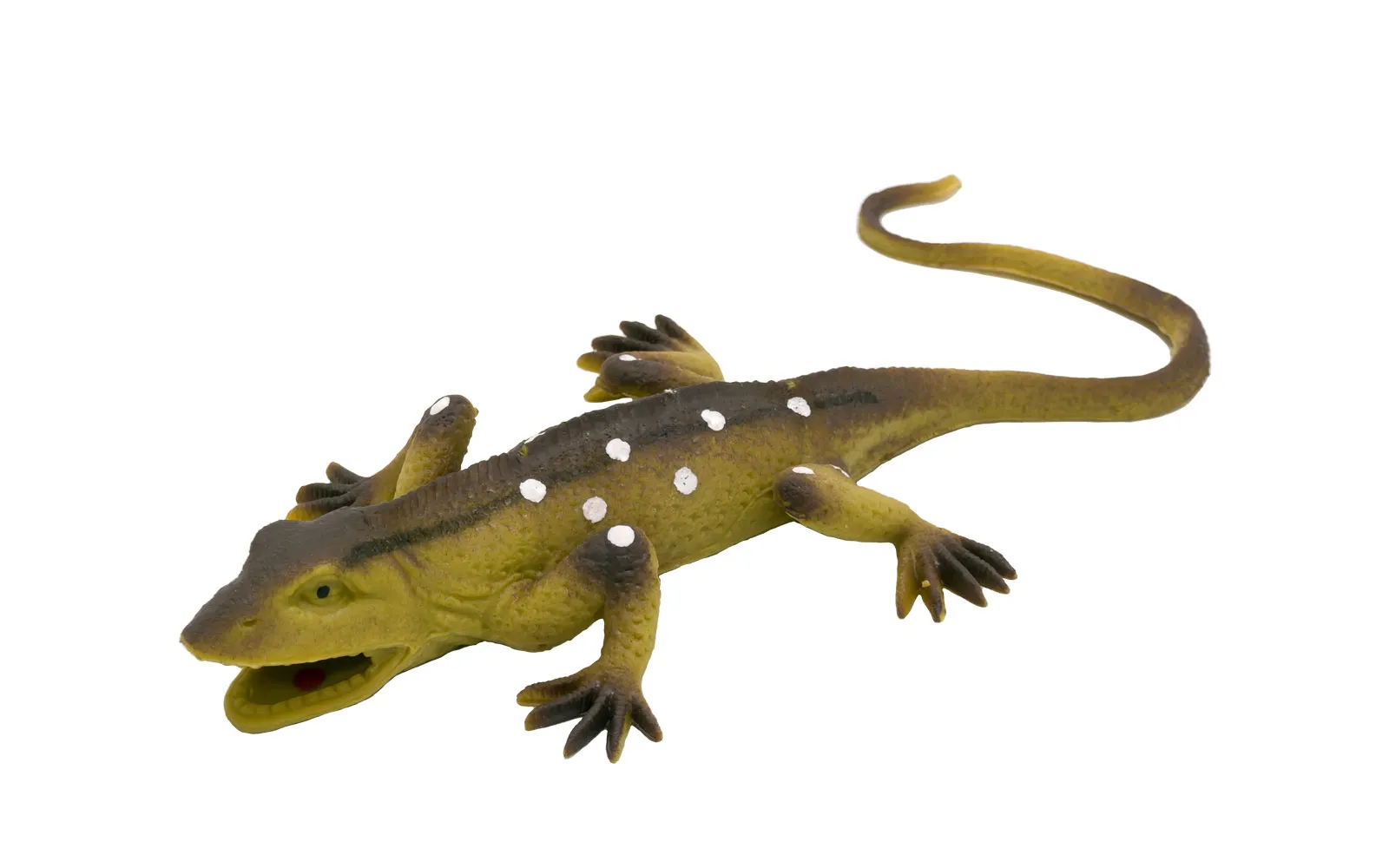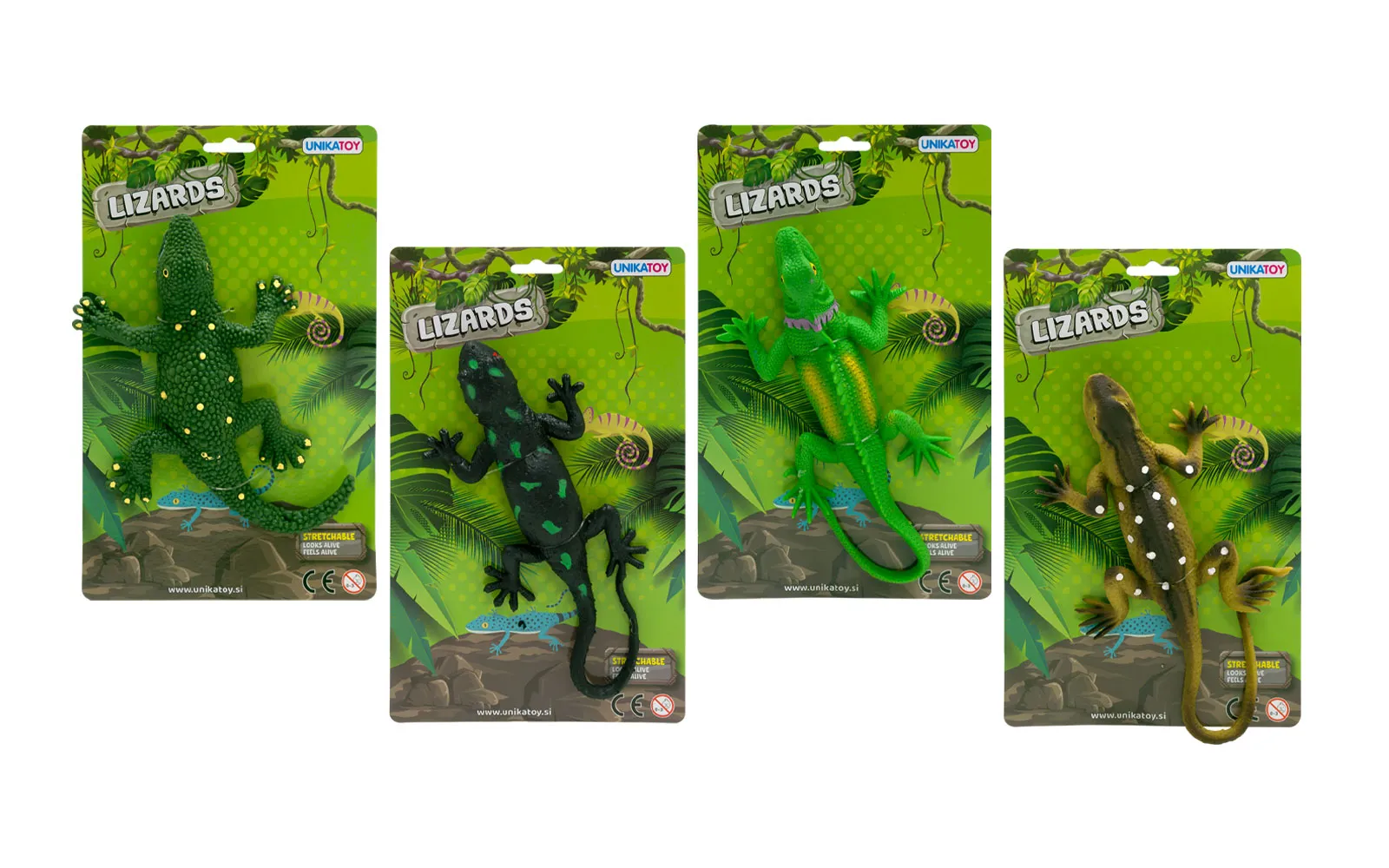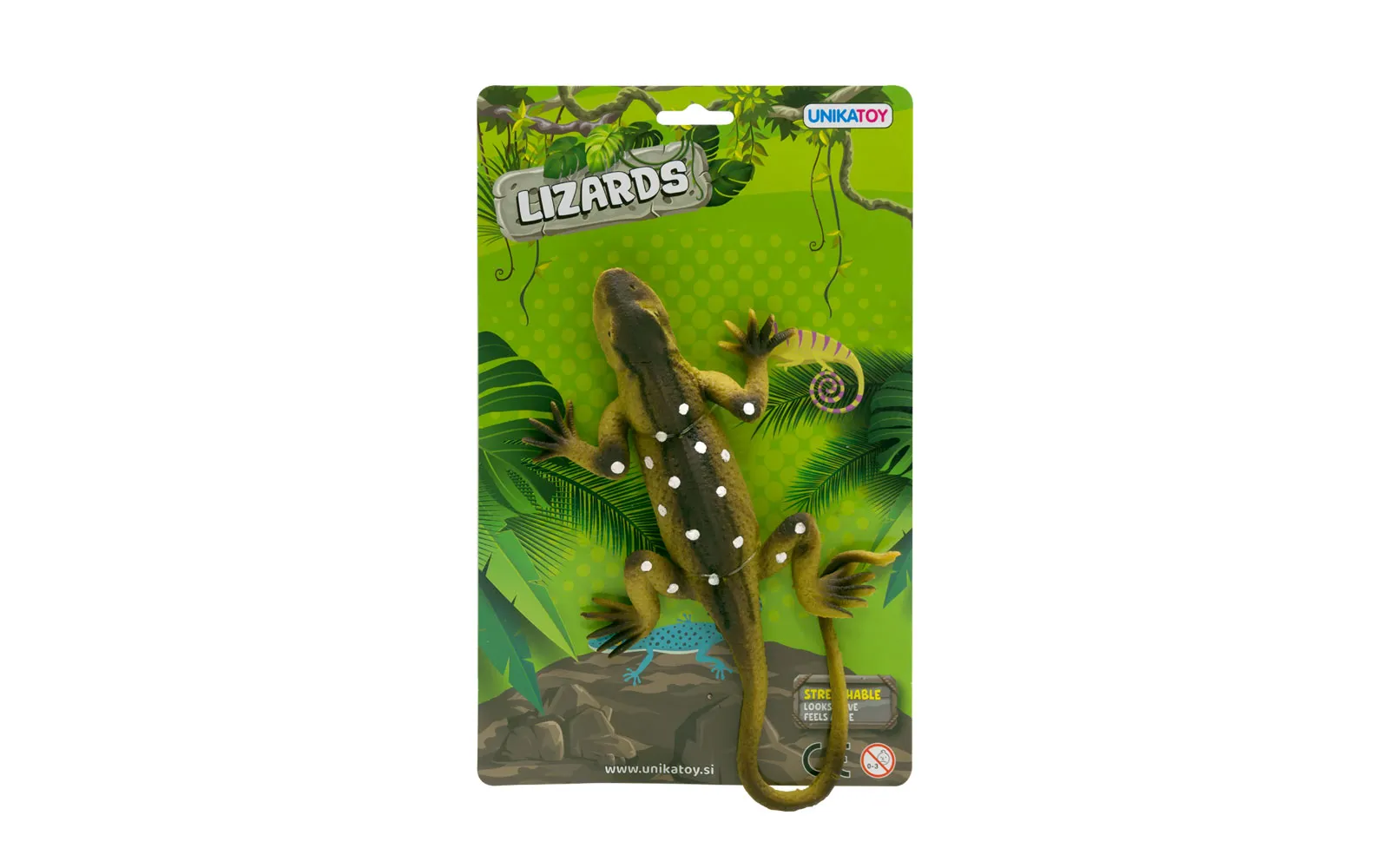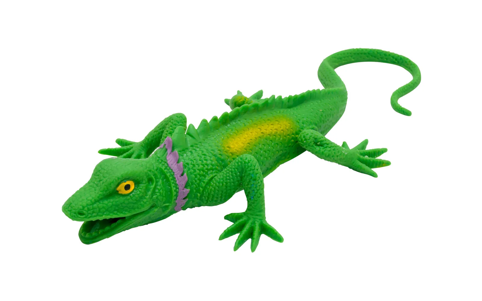 Izgleda kao pravi i rastezljiv je ovaj mali gušter dvije različite boje. Za djecu od 3. godine starosti nadalje. Duljina jednog guštera s rastegnutim repom je 30 cm.