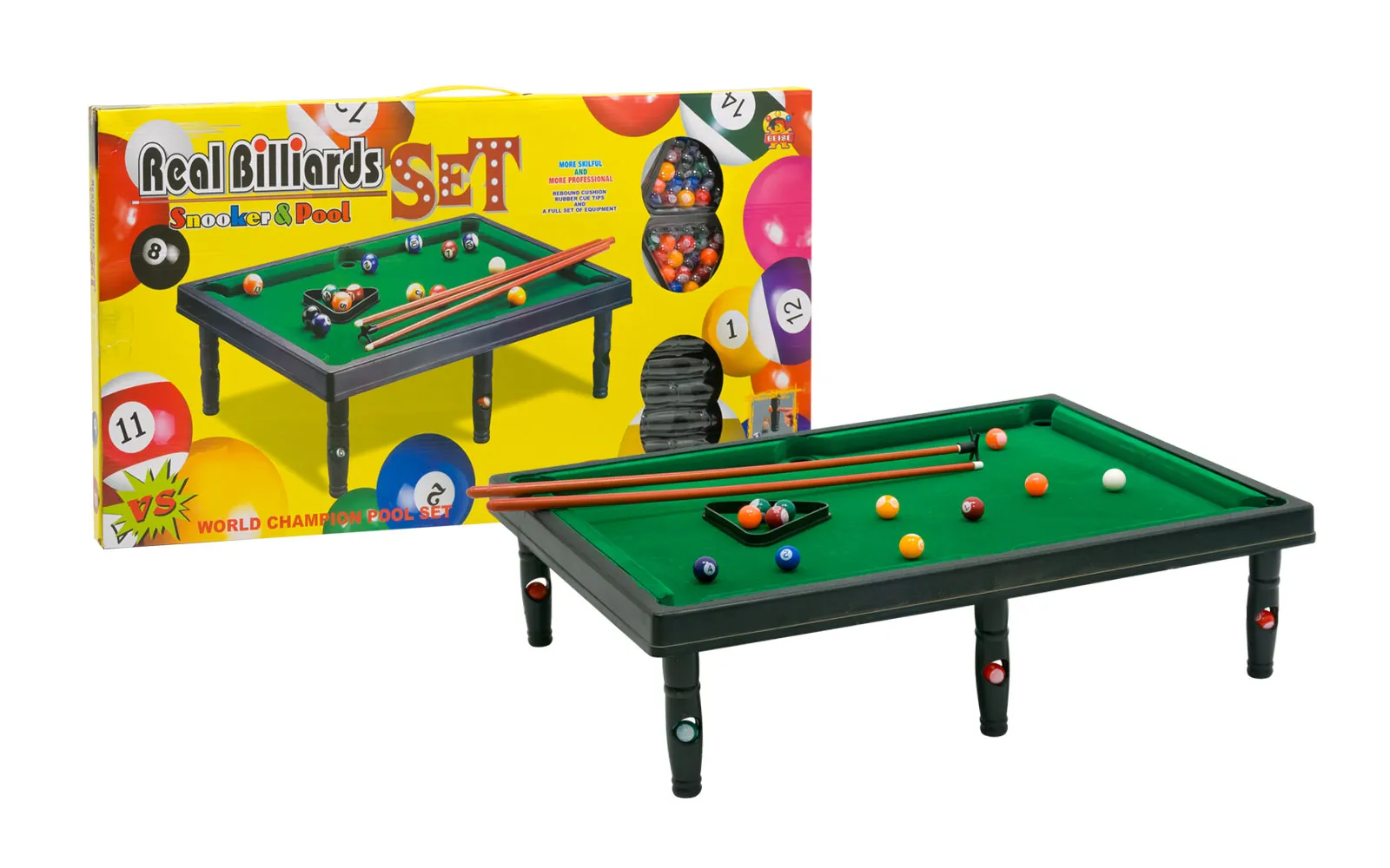 POSTANITE PRAVI MAJSTOR BILJARA! S ovim odličnim setom biljara možete se isprobati u preciznosti i spretnosti te pobijediti svoje protivnike u napetim dvobojima! Igra biljara nije samo zabavna, nego također poboljšava koncentraciju, koordinaciju ruku i očiju te strateško razmišljanje. SVE ŠTO VAM TREBA ZA IGRU: plastični biljarski stol, dvije štapiće za udarce, set kugli za igru. KOMPAKTNE I PRAKTIČNE VELIČINE: dimenzije sastavljenog stola: 55 x 41 cm. ZABAVA ZA MALA I VELIKIH IGRAČA! Set omogućava učenje osnova biljara na jednostavan i zabavan način. Djeca i odrasli moći će se natjecati u izazovima spretnosti te trenirati svoje taktičke vještine. Biljar je igra koja spaja ljude i pruža nezaboravne trenutke natjecanja i smijeha! PRIKLADNO ZA DJECU 3+. Proizvod nije prikladan za djecu do 3. godine starosti. Zgrabite štap, ciljajte precizno i postanite pravi majstor biljara!