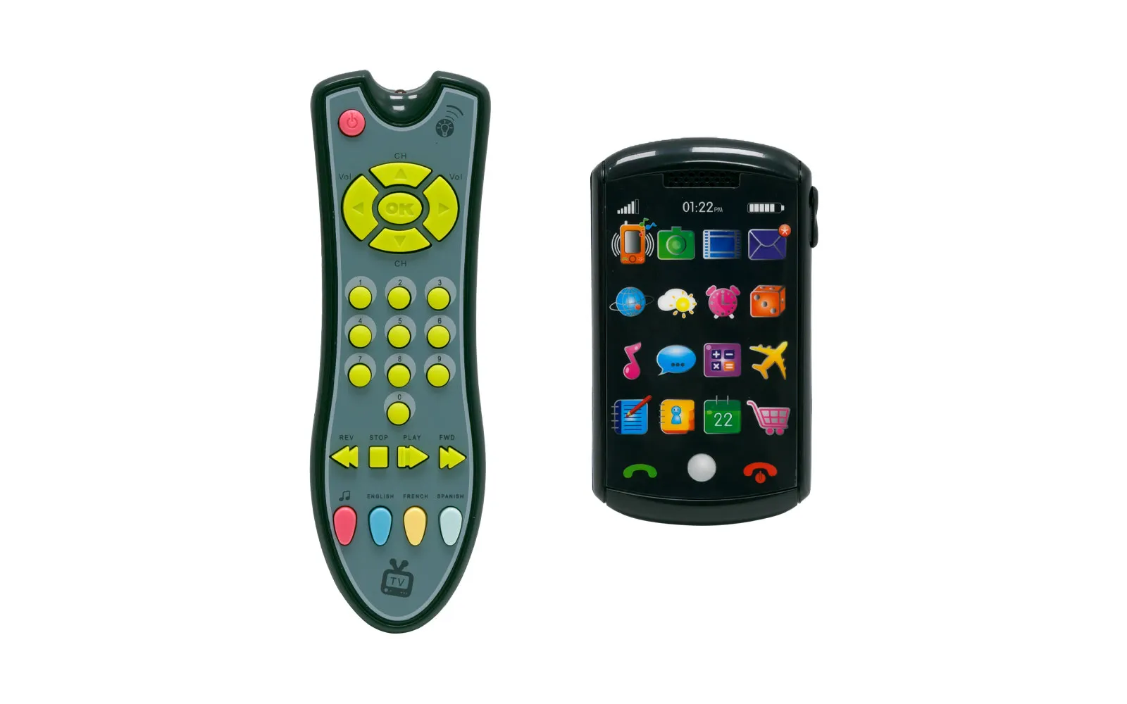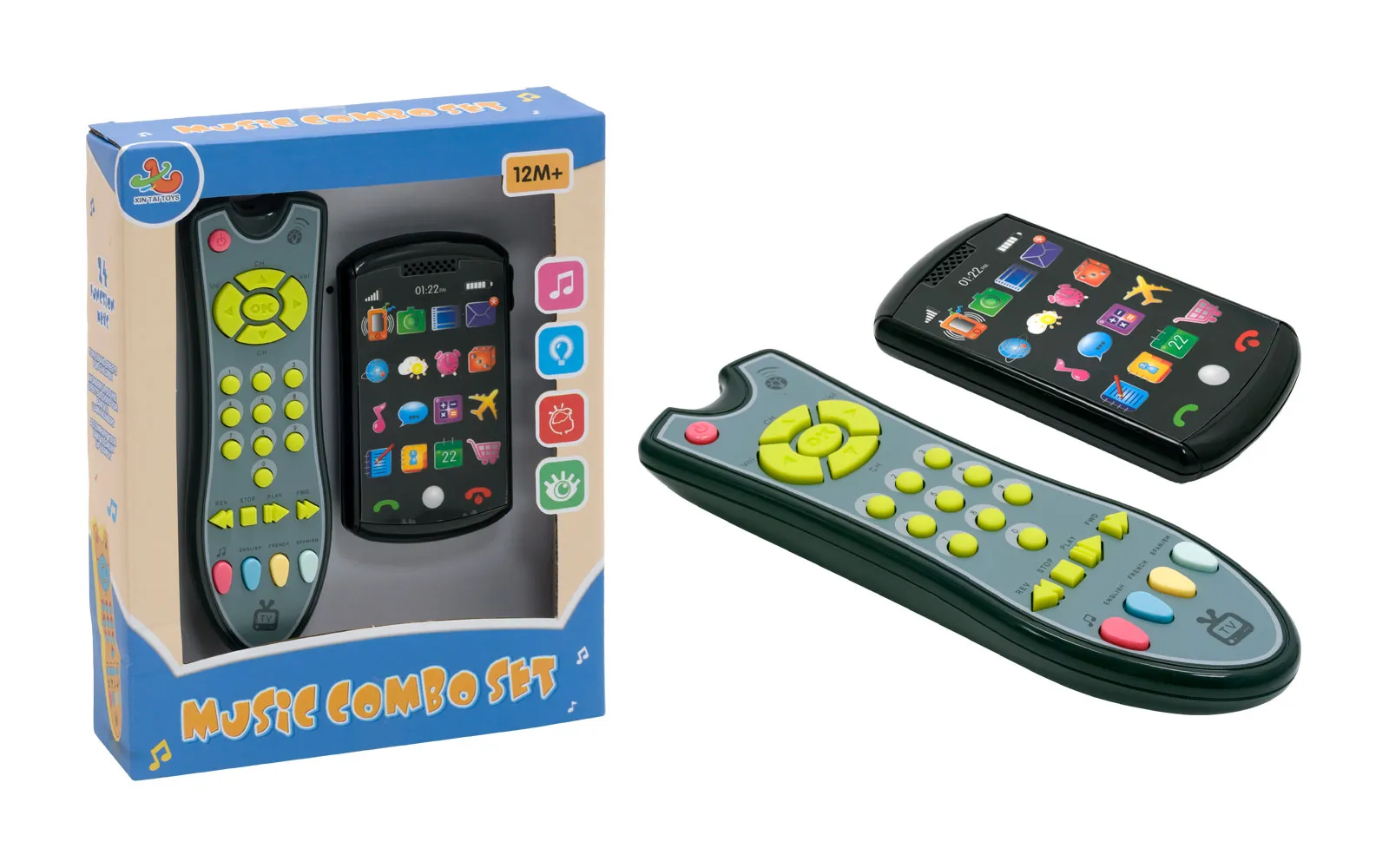 Set dječjeg telefona i daljinskog upravljača. Telefon ima različite zvučne i svjetlosne efekte i radi na baterije 2x 1.5V AAA LR03, koje su priložene. Daljinski upravljač ima različite zvučne i svjetlosne efekte te radi na baterije 2x 1.5V AAA LR03, koje nisu priložene.
