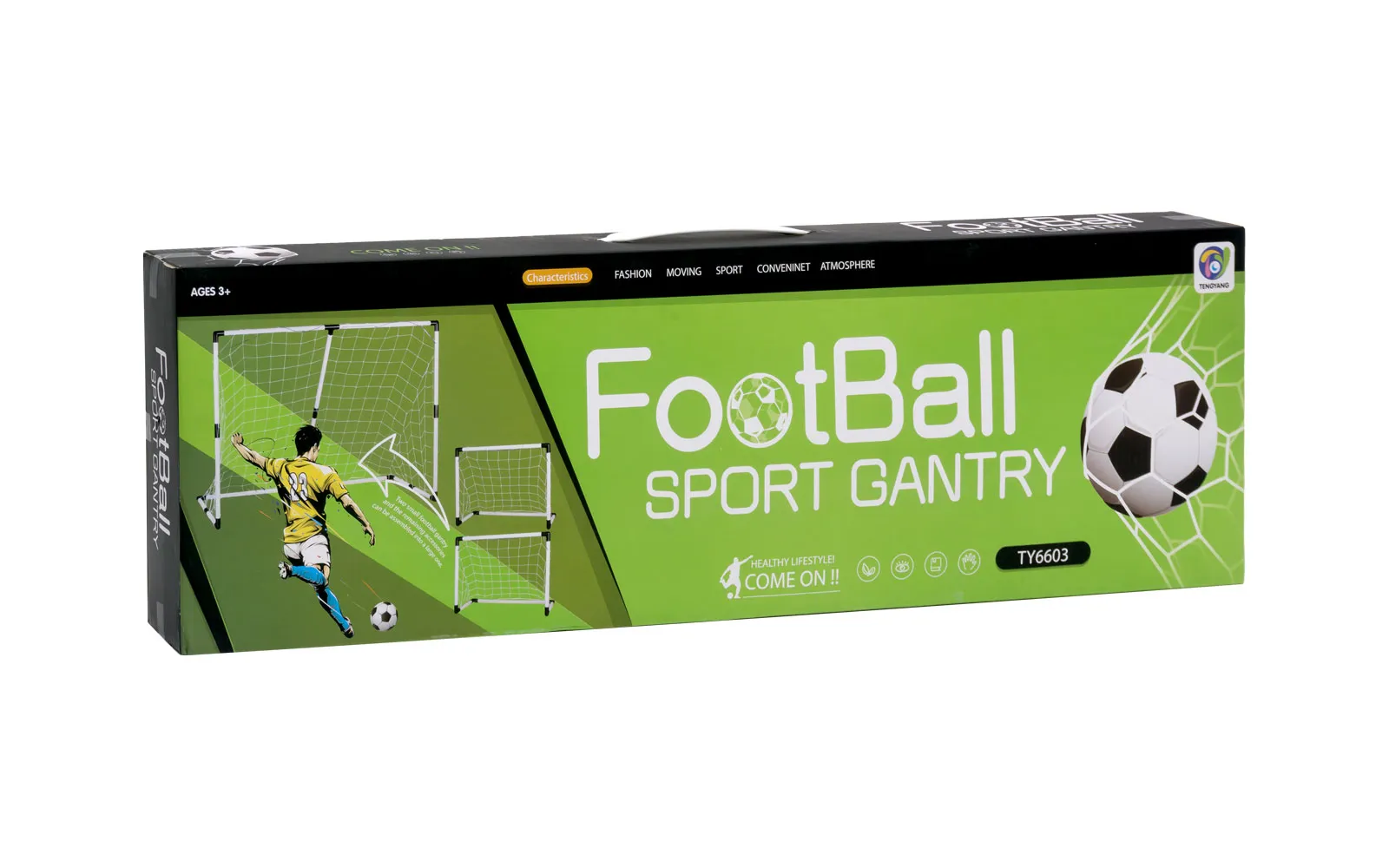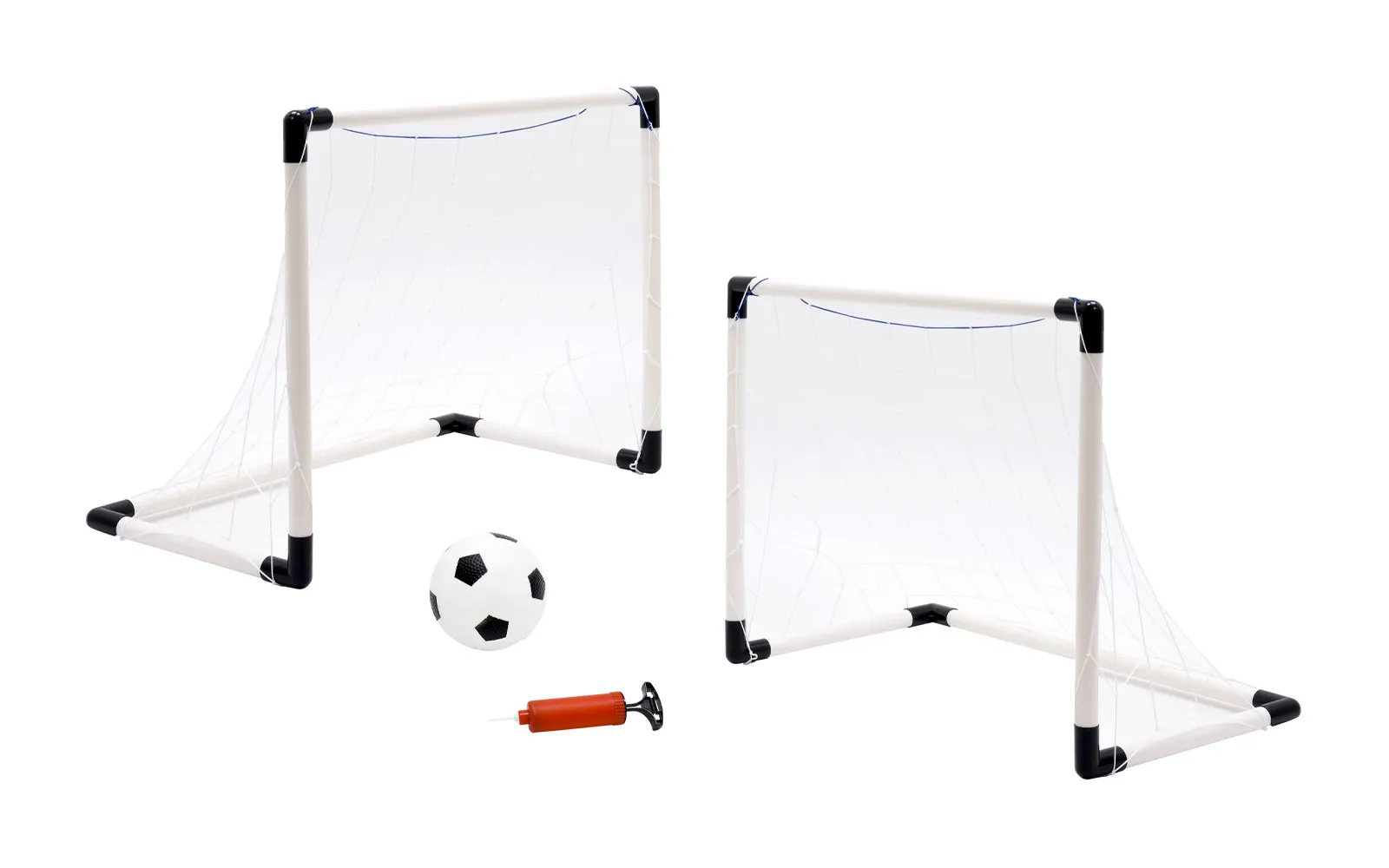 PRIPREMITE SE ZA NOGOMETNI TURNIR! Set nogometnih golova 2u1, MINI savršen je izbor za sve mlade nogometaše koji žele poboljšati svoje udarce i organizirati uzbudljive utakmice s prijateljima! Postavite golove, napunite loptu i zabava može početi. Nogometni set uključuje dva gola dimenzija 66,5 x 70 x 20,5 cm, koji se lako sastavljaju i postavljaju na bilo koje igralište. Zbog svoje veličine idealni su za igru u dvorištu, parku ili čak u većim unutarnjim prostorima. Osim dva gola, set sadrži i nogometnu loptu te pumpu, kako biste uvijek bili spremni za igru. Uz ovaj komplet svaki trenutak postaje prilika za trening i zabavu! SADRŽAJ:2 nogometna gola (66,5 x 70 x 20,5 cm), nogometna lopta, pumpa. Okupite svoju ekipu i pripremite se za dinamičnu igru punu golova i veselja!