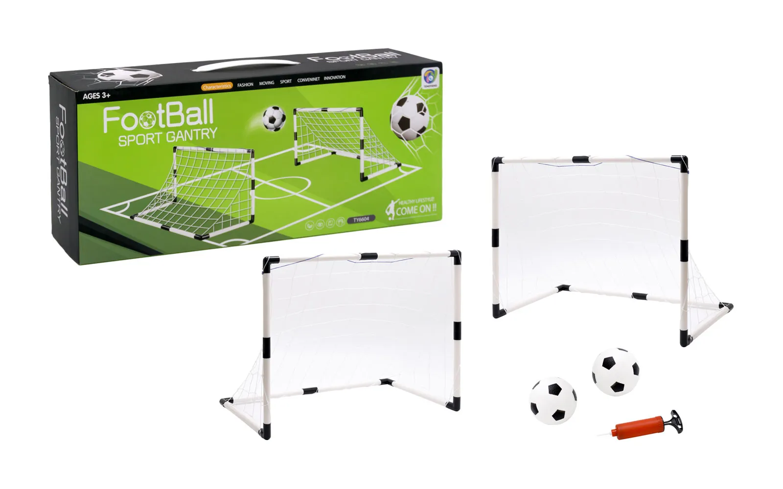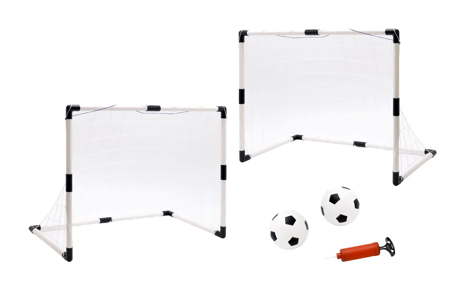 Vrijeme je za nogometni turnir! Ovdje je set dva nogometna gola. Velika golova je 95 x 70 x 48 cm. U setu su priložene i lopta i pumpa.