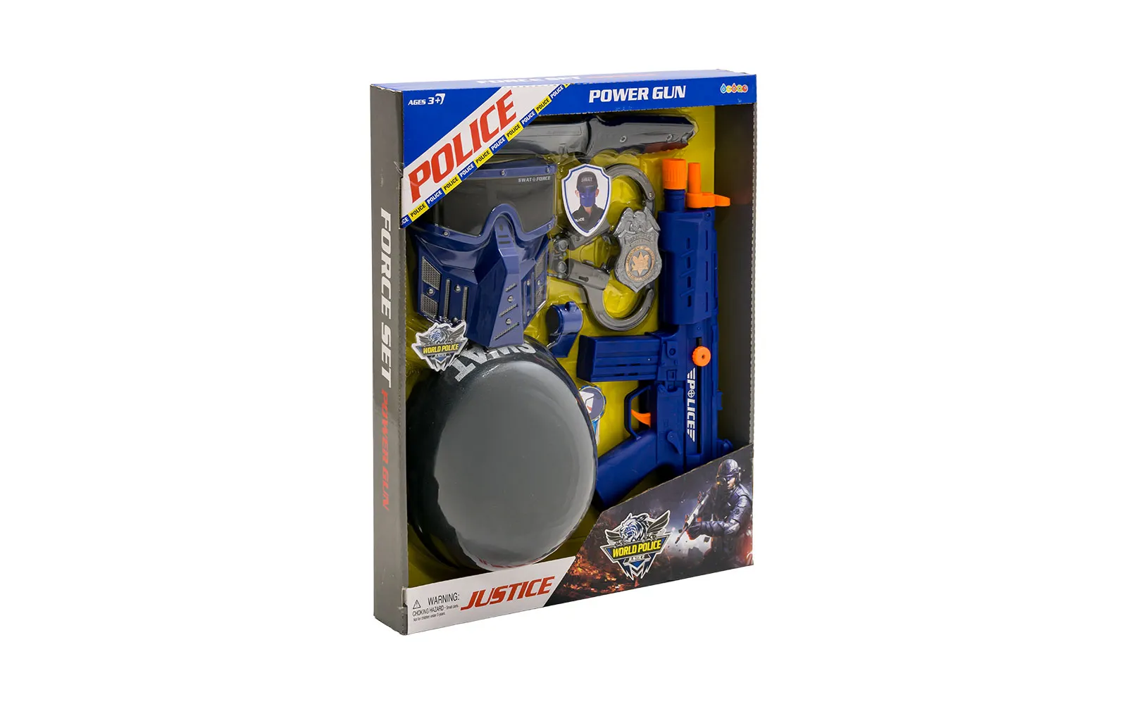 Osjećaj se kao pravi policajac s izvrsnim policijskim priborom. Karnevalski policijski set s kacigom idealan je za djecu koja za karneval žele postati policajci. Set sadrži kacigu, pušku, lisice, oklop, značku i druge super policijske dodatke.