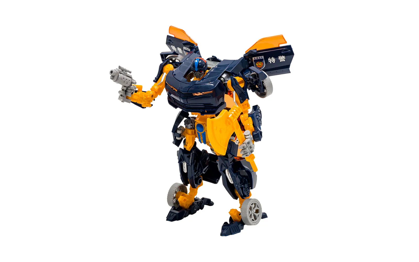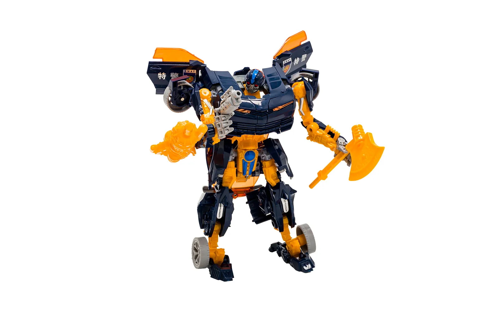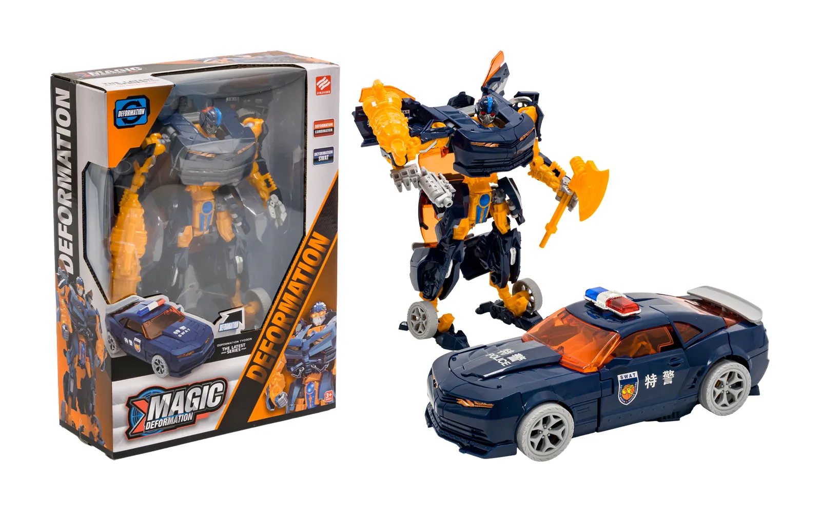 Pripremite se za akciju s izvanrednim transformacijskim robotom Magic Deformation! Ova dinamična igrača kombinira policijski automobil i robota ratnika u jednom. S jednostavnom transformacijom, djeca mogu brzo preći iz automobila u robota i stvarati napete, kreativne priče. Proizvod se odlikuje atraktivnim dizajnom u tamnoplavoj i narančastoj boji, pokretnim dijelovima za realističniju igru, te kvalitetnom izdržljivom izvedbom. Igračka je pakirana u privlačnom darovnom pakiranju, zbog čega je odličan izbor za darove, kolekcionare ili sve ljubitelje akcijskih transformacijskih vozila.