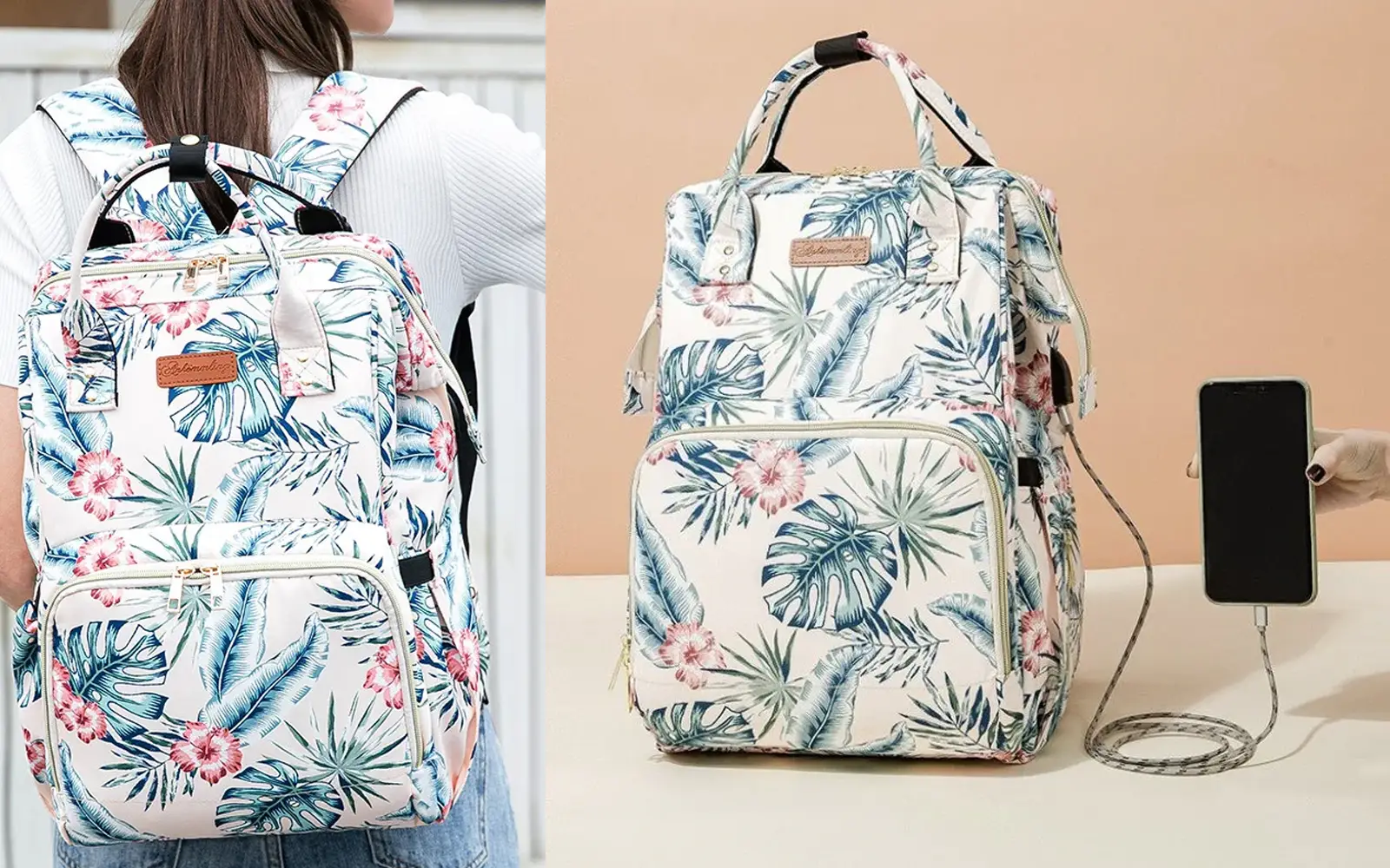 Ne znate gdje bi spremili sve dječje potrepštine, kad idete u šetnju ili na izlet? Predstavljamo vam torbu/mochila za presvlačenje s USB priključkom! Prekrasna torba/mochila, u koju možete spremati sve što trebate za njegu vašeg djeteta, bez dodatnih vrećica i torbi. Torba\/mochila za presvlačenje također ima USB ulaz, tako da ćete tijekom putovanja brzo moći napuniti vaš mobilni uređaj. Također je osigurana udobnost nošenja, jer su remeni ergonomski dizajnirani, tako da rameni remen i križni dio ne trpe.