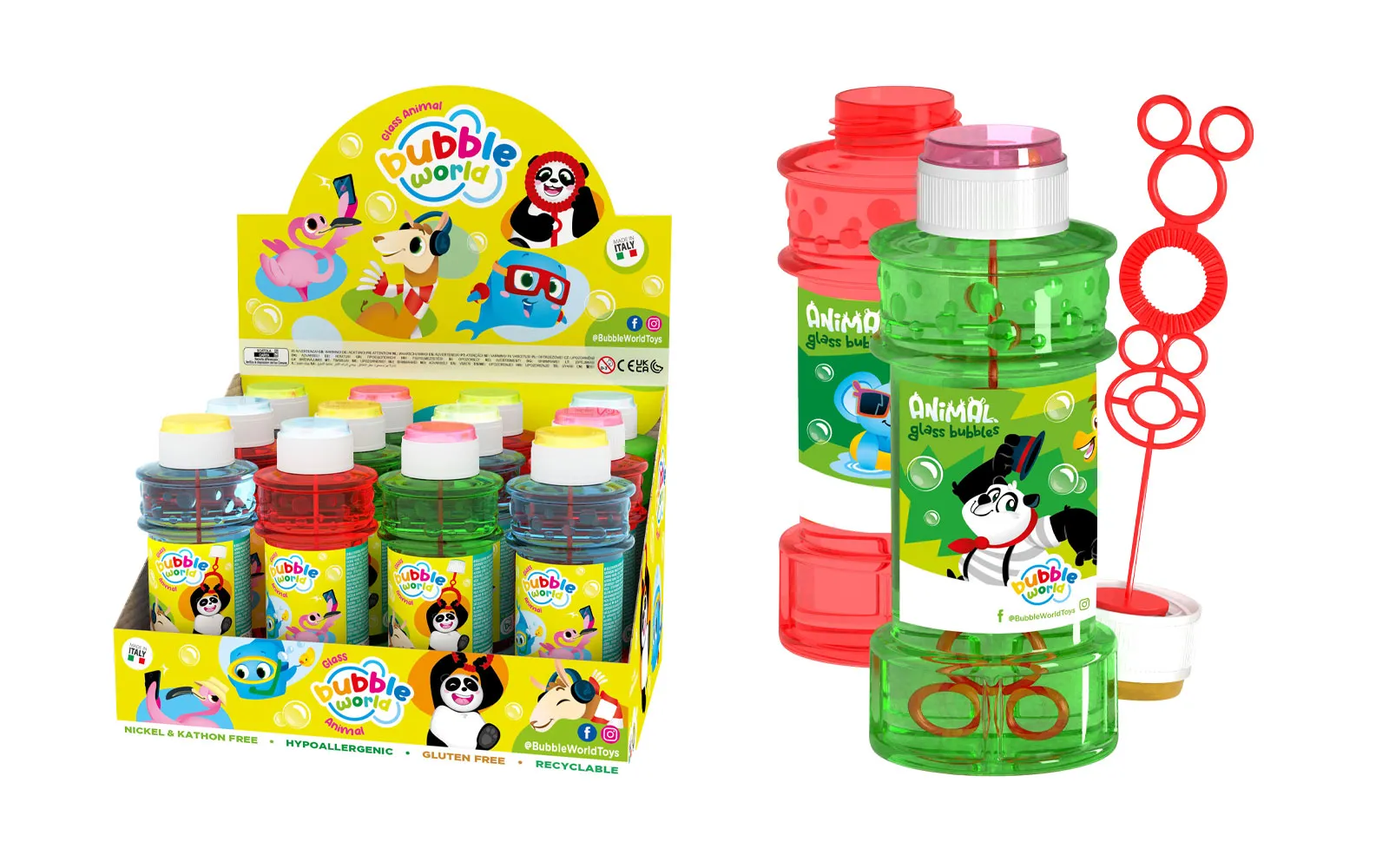 Razni motivi likova iz crtića na boci od 300 ml tekućine za pravljenje zabavnih mjehurića od sapunice. Dostupno kao Peppa Pig, Paw Patrol ili Minnie Mouse.