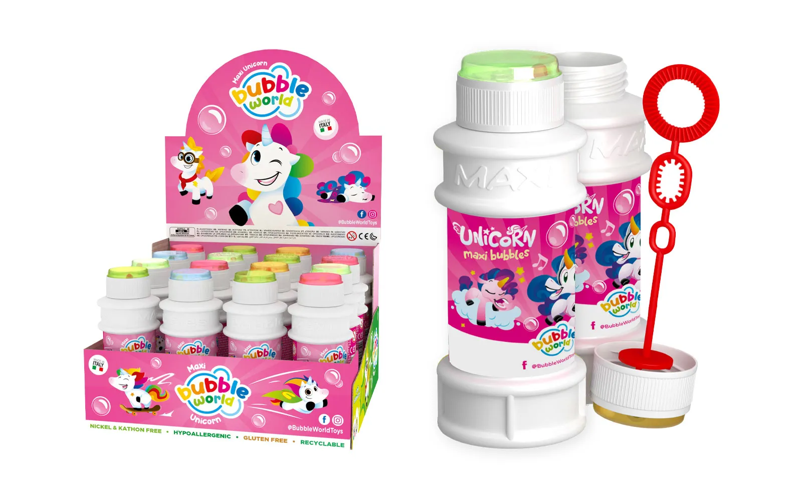Različiti motivi crtanih likova na bočici od 175 ml tekućine za izradu zabavnih mjehurića sapunice.