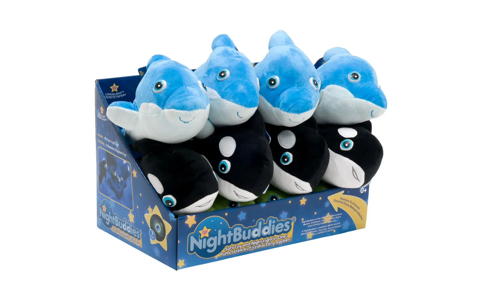 Mekane plišane životinje Night Buddies su previše slatke za riječi. Ove prekrasne životinje savršene su za spavanje ili igru. Dostupne u stilu kornjače, delfina ili orke. S njihovom mekanom, plišanom tkaninom i umirujućim svjetlom sigurno će biti od velike pomoći djeci za miran san. Plišana igračka je velika 30 cm i ima svjetlosne efekte.